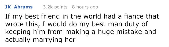 I don’t know about you, but if I received something like this from anyone I would swiftly tell them to stick it where the sun doesn’t shine. Weddings are supposed to be a celebration of love, a joyful gathering of the people nearest and dearest to you, not a competition or a cash cow to be milked. Scroll down to see this latest incarnation of the bridezilla from hell, and let us know what you think in the comments! (Facebook cover image: istockphoto / ViktorCap)