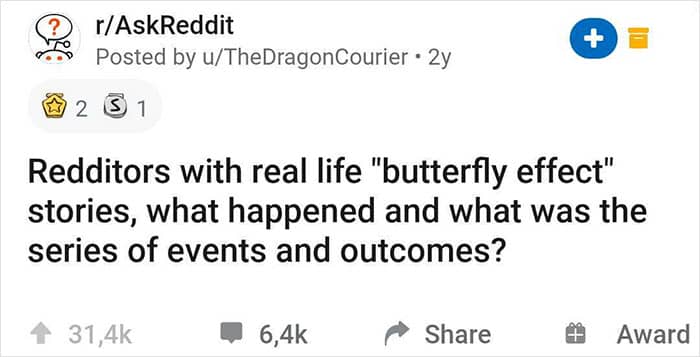 Like the decisions we make in life. So this time, we’re diving deep into real-life stories of the “butterfly effect” shared by people in this Reddit thread. Some of them are truly unbelievable, but hey, truth is stranger than fiction.