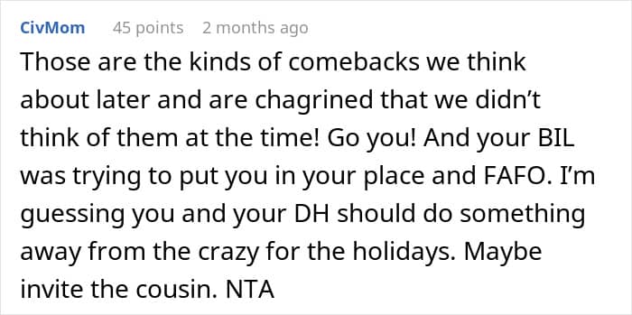 But one woman was fed up with her rude BIL and managed to strike a nerve