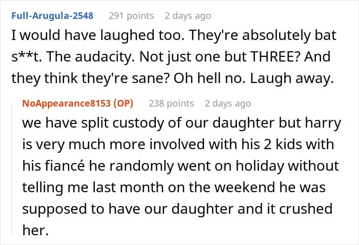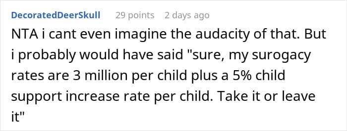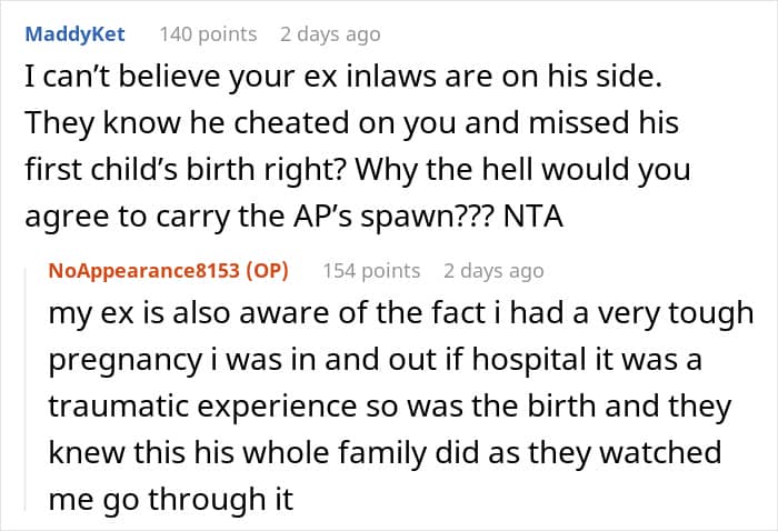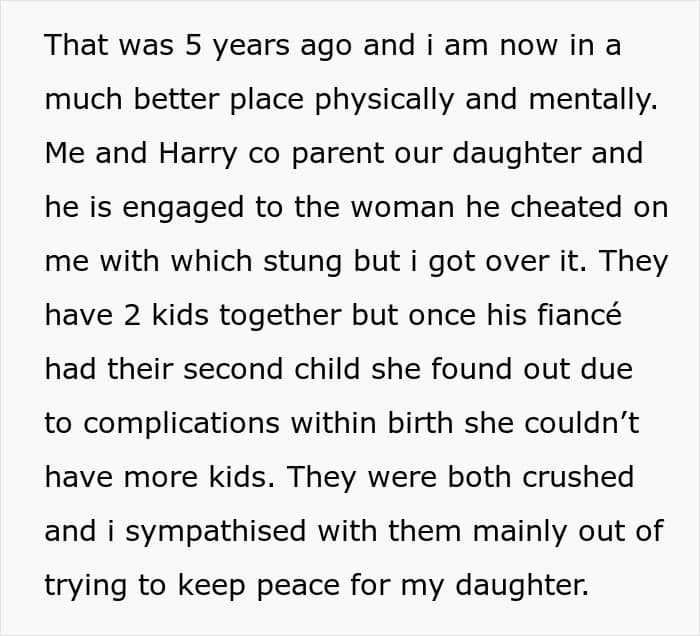 Sometimes, when looking at their partner’s behavior, one might assume they have seen everything only to get proven wrong later on. This is when a person has to find the strength to “take it easy” for the sake of their own well-being – not giving more of one’s attention than necessary to a person like this and thus avoiding the mistake “of paying attention to the wrong people”, which Henry Cloud called one of the most expensive things a person can do. This seems to have been the response of this Redditor, who tried to keep it civil with her ex until he asked her to be a surrogate mother of three children for him and the woman he cheated with.