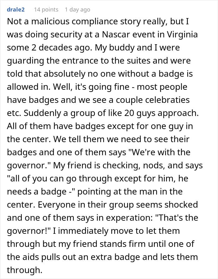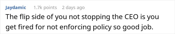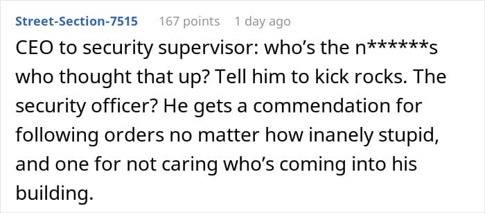 This Redditor chose the latter. As a security guard, he was instructed to keep employees from using the main entrance and direct them elsewhere. No exceptions. So, he did exactly that, even when the person standing at the door was none other than the CEO himself.