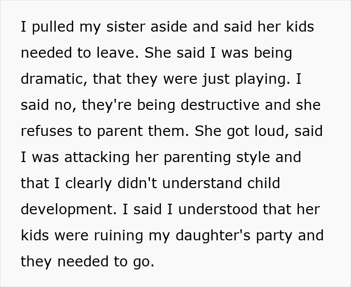 They wreaked havoc at every family event, but the poster lost it after they almost ruined her daughter’s birthday, while her sister just watched