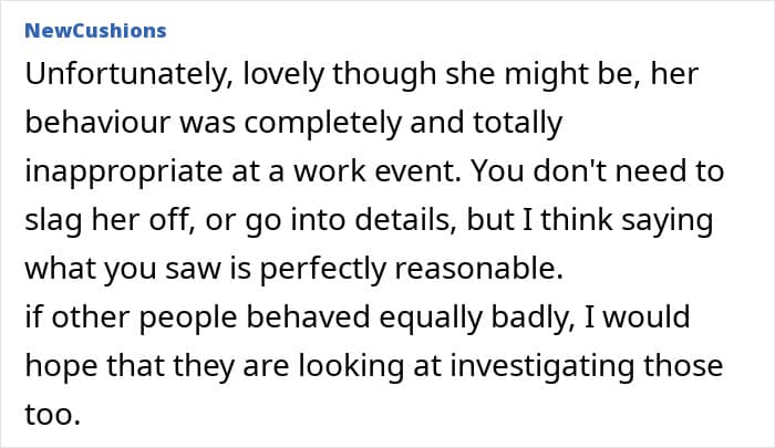 By calmly and factually stating what happened, the narrator fulfills their professional obligation without having to feel like a malicious “snitch,” leaving the final decision in the hands of management, where it belongs. In the comments, the OP later revealed that this is exactly what they did, much to netizens’ relief.