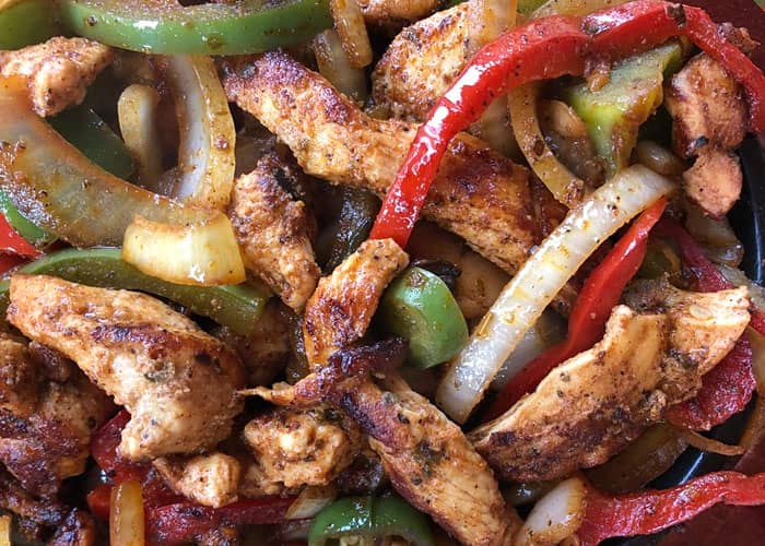 The fajitas sizzle because we pour oil and water on a hot plate not because we grilled anything.