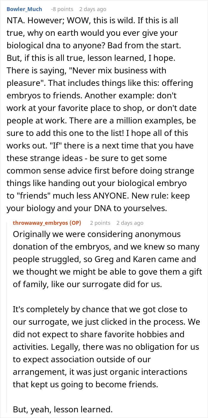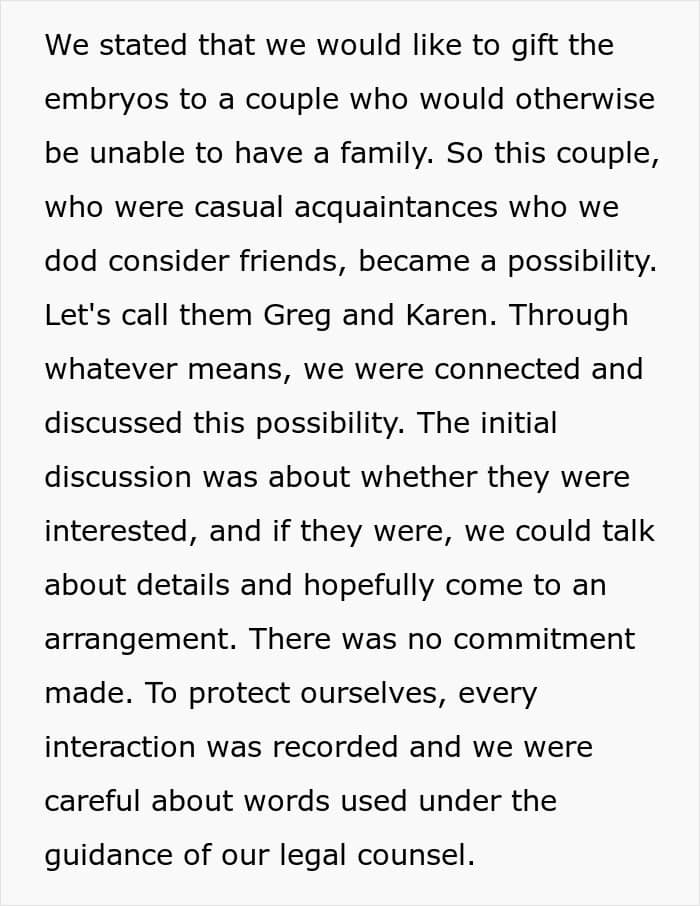 When that dream doesn’t happen as easily as you expected and you realize infertility might be part of your story, it can feel like real heartbreak. So it’s understandable that the author of this story wanted to help another family, especially through a process that’s often difficult and expensive. She and her husband planned to gift embryos to friends who needed them and were excited to help. But the situation didn’t come with the same kindness in return, leaving them with a sour, painful experience.