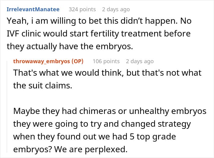 It’s hard to wrap your head around the fact that the family waiting on the embryos didn’t seem to extend basic respect, especially while facing their own fertility struggles. Infertility, as many women share, can take a serious toll.