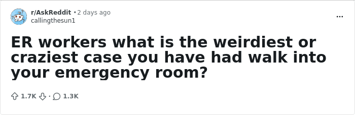 We has compiled the most interesting answers from an online thread where someone asked: “ER workers, what is the [weirdest] or craziest case you have had walk into your emergency room?” The tone of the answers goes from unexpectedly hilarious to seriously disturbing and heart-wrenchingly sad at times. So, Pandas, proceed with caution.