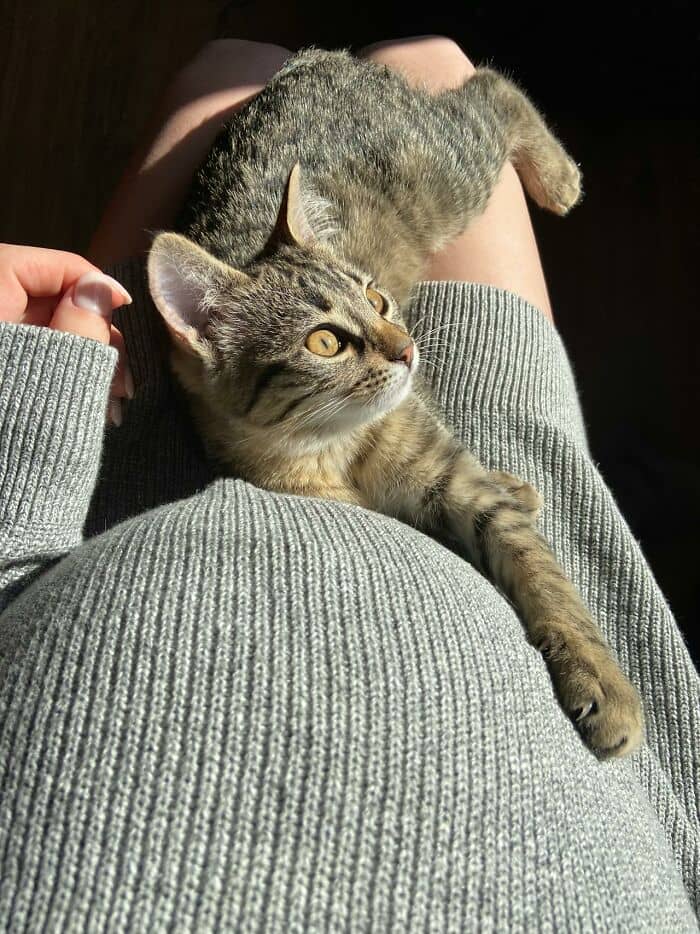 My cat told me I was pregnant. She got up on my lap kneaded on my stomach then put her ear to it. She’s never done that before and never did it again.