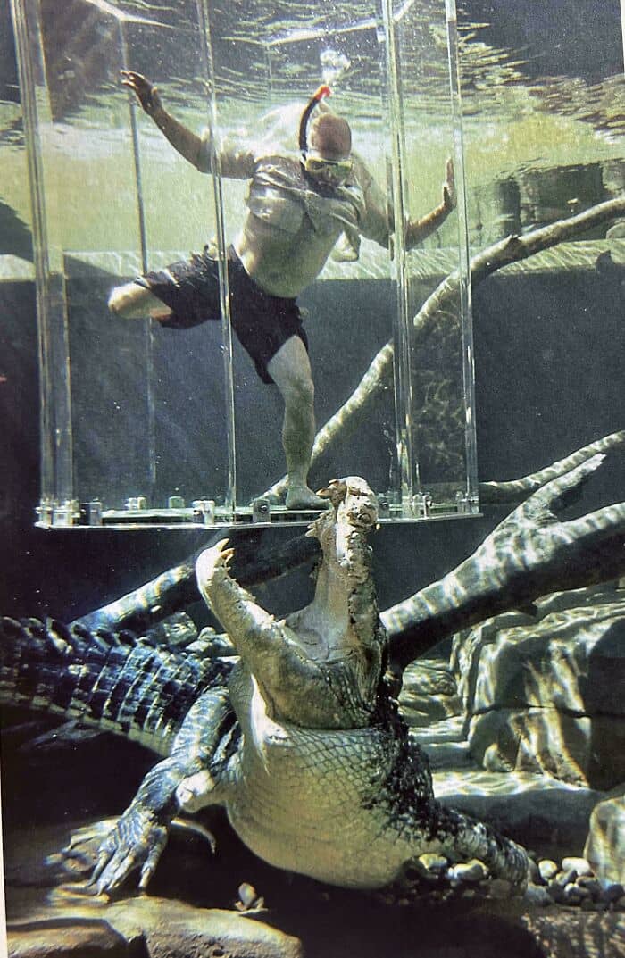 #77 The ‘Cage Of Death’ At Crocosaurus Cove, Australia. Would You Dare Enter The Cage? The Eighteen-Foot Alligator Would Love A Visit!🐊