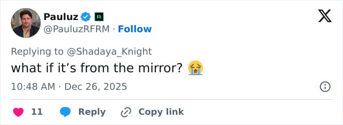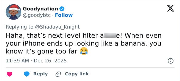 “I don’t know why someone with her looks, her money, her clothes still has to use filters. What hope have any of the rest of us got,” read another comment, while others speculated that the oddly shaped phone was the result of a curved mirror.