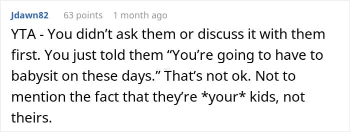 Many people thought the parent was in the wrong for expecting their older kids to babysit