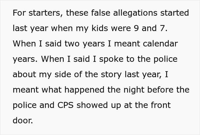 In the story’s case, that moment could be when the children repeatedly made false yet serious allegations against their father, which apparently happened for two straight years.