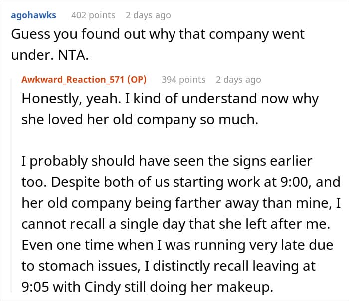 RELATED:This guy’s GF took extended work lunch breaks, even though she’d just started her job