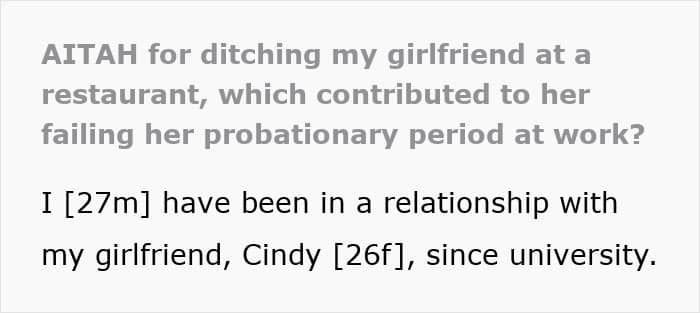 But one guy recently shared how he helped his girlfriend land a job at his company after she lost her previous one. Instead of shining, the guy says his girlfriend was “a horrible employee.” She was constantly late and took extended lunch breaks all the time. When her tardiness and lack of professionalism threatened to drag him down with her, the guy put his foot down. He left her stranded at a restaurant during yet another long lunch. Now she’s blaming him for losing her job. And he’s wondering if he was wrong.
