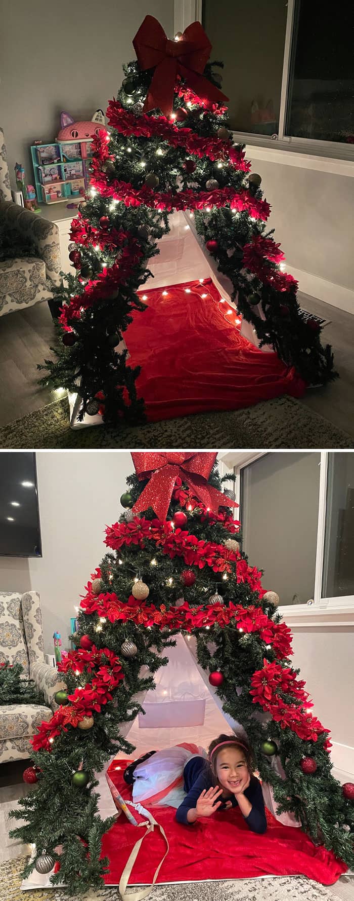 #29 The Elves Are Busy At Our House. I Saw A Picture Of A DIY Christmas Decorated Tent, And I Said We Have To Do That