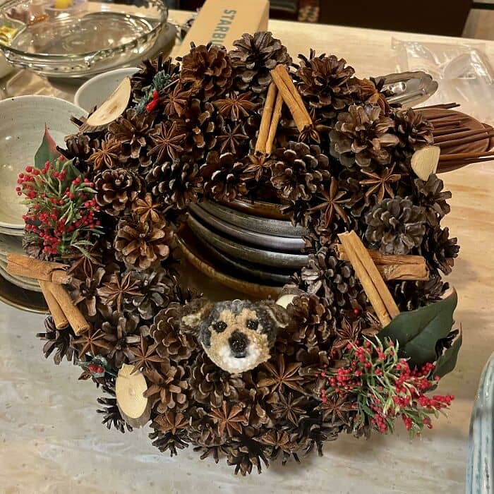 #79 I Built The Little Mini Wreath For The Big Cone Out Of Packaging Material, So It Doesn’t Look So Lonely Anymore And It’s Used As A Table Decoration At Christmas