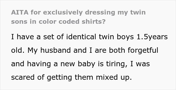 Read on for the full story and how the members of the AITA online community reacted to this rather peculiar accusation. Don’t forget to share your opinion in the comments. And if you happen to have twins (or know someone who raised a pair), we’d especially love to hear from you, Pandas.