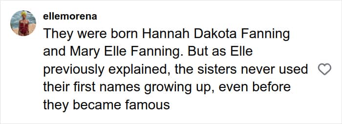 HighlightsFans are pushing back against “breaking news” that Elle and Dakota Fanning use their middle names professionally.The sisters have long explained that using middle names is a common family and Southern tradition.The duo is set to star together for the first time in The Nightingale, an adaptation of Kristin Hannah’s novel.