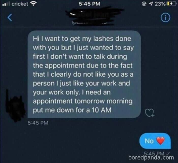 #14 Entitled Woman Wants To Book An Appointment To Get Her Lashes Done