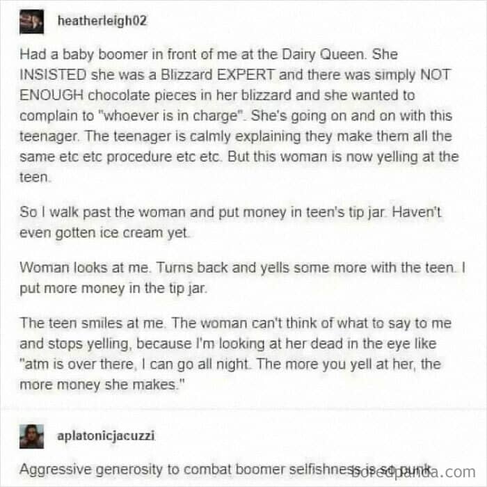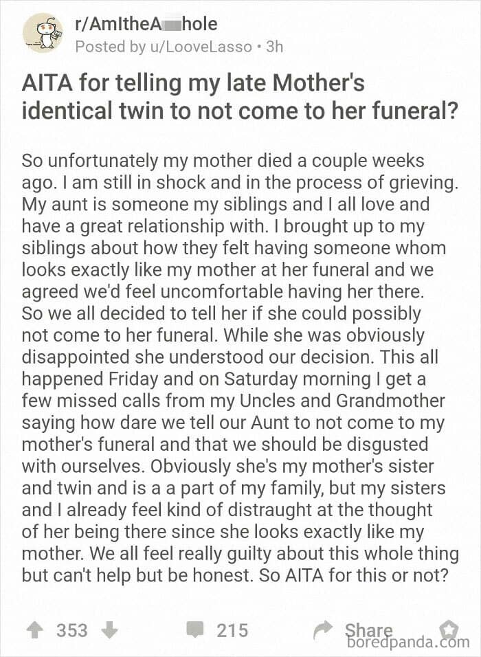 However, just because a person’s entitled, it doesn’t mean that they deserve getting hate online. For this reason, the subreddit forbids including any information that could make it possible to identify the people connected to any posts. From names and phone numbers to addresses and locations, it’s best to keep those things private. People change, after all, and you never know if somebody who was narcissistic yesterday might have turned into a Good Samaritan today.