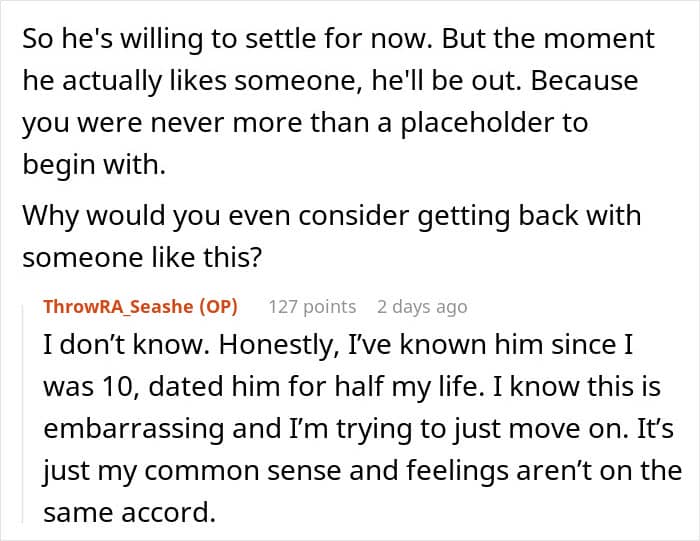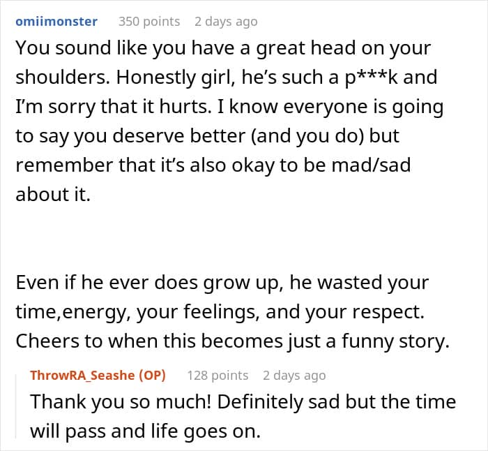 Many commenters supported the woman’s decision to move on
