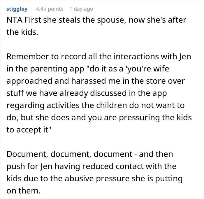 But this redditor made sure that her children knew that they didn’t have to take part in an activity that they were not interested in. In her daughter’s case, it was cheerleading—something that the girl’s dad’s new partner—his affair partner, as the OP calls her—really wanted her to take part in. Unsurprisingly, the woman pressuring the girl into cheerleading became a problem and even led to the OP wondering if she was a jerk for how she handled the dispute.