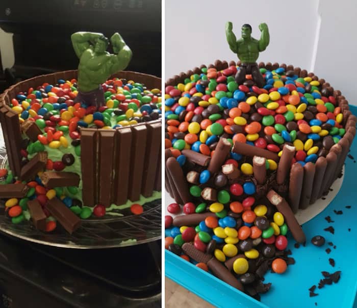 #50 My Son Chose A Hulk Cake From Pinterest. My Attempt Is On The Right