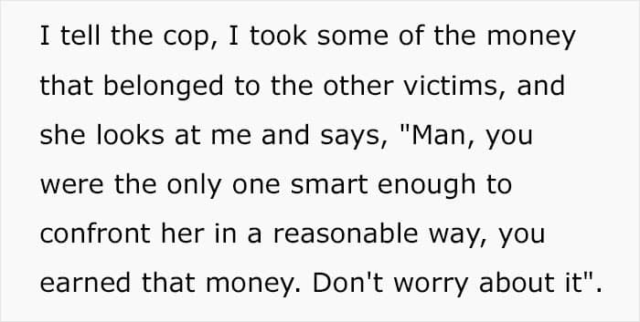 On the other hand, some folks just love giving details or adding little things for “context”. Most of us love to spin a tale, particularly if there is an audience. The more cautious approach would be to wonder if perhaps some details were embellished, for example, the police officer stating just how smart this man was to get his money back or the applause he apparently received. Don’t believe everything you read online.