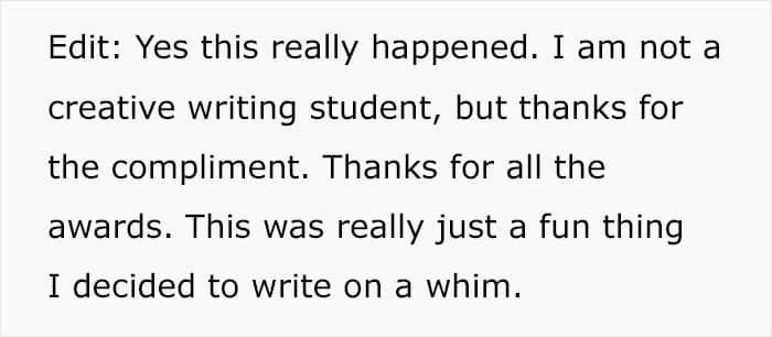 However, this story comes with one more possible problem. Many commenters note that the man’s details are rather excessive and self-congratulatory. The natural inclination of many readers was to declare it as fake. After all, “and then everyone clapped” is a classic hallmark of a made-up internet story.