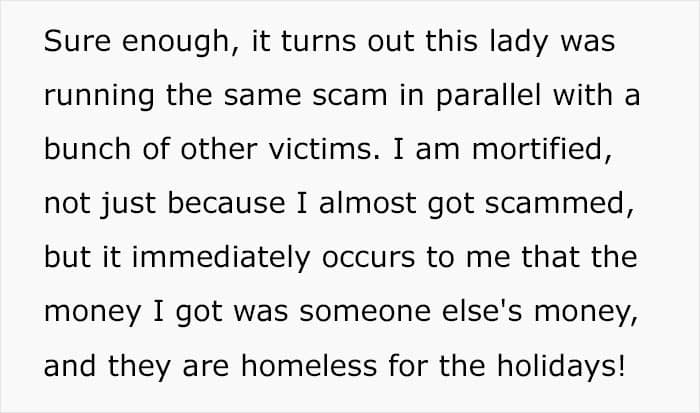 It does seem that the scam was very real, as there are news stories about it. You can even see a picture of the scammer in the link if you are interested. That being said, this does not actually confirm the man’s story. As one comment noted, liars love to embellish their stories with all sorts of details to make them seem more believable.