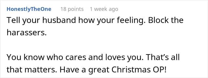 The problem was that these things bothered her a lot, but her husband had no clue about it. He was under the impression that she didn’t really care about her dad’s side of the family, but she couldn’t ignore it this time. Moreover, she felt guilty that it would ruin her daughter’s first Christmas if she were down about it. Probably overwhelmed by everything, she vented online.