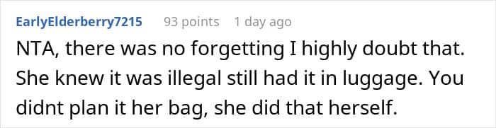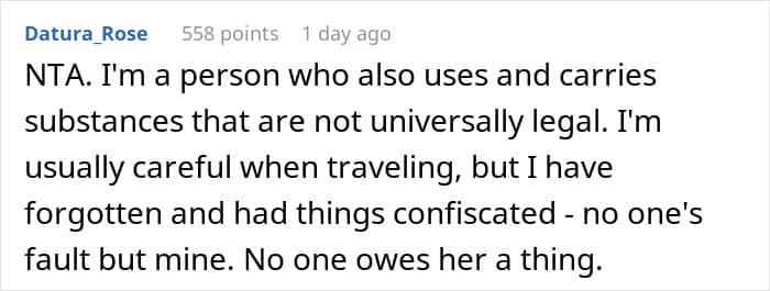 Based on the author’s account, the woman put herself in a tight spot because she had something illegal on her. In that scenario, there is no one to blame but her.