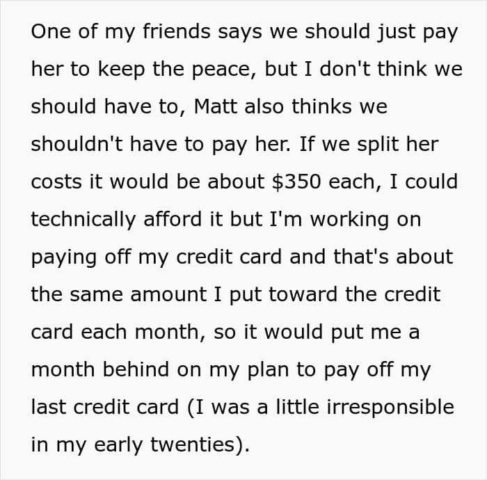 The author provided more details in their answers to commenters’ questions, but most of them sided against the woman