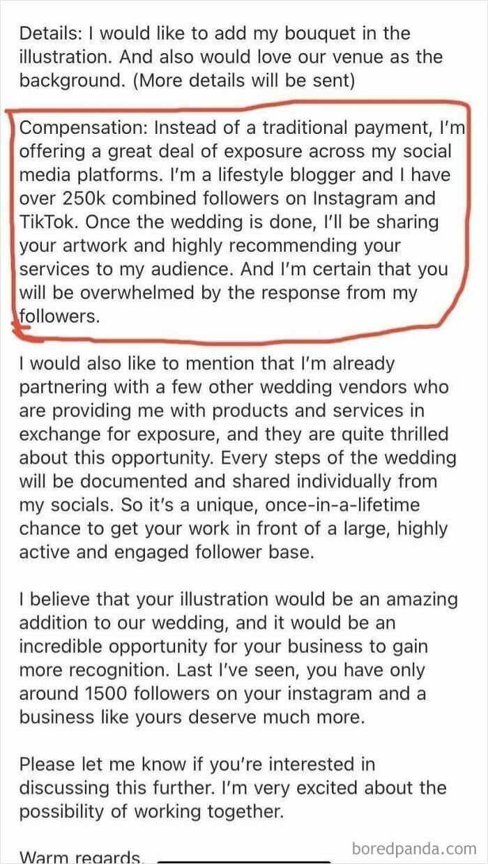 #14 Influencer Bride-To-Be Begging For A Free Artwork