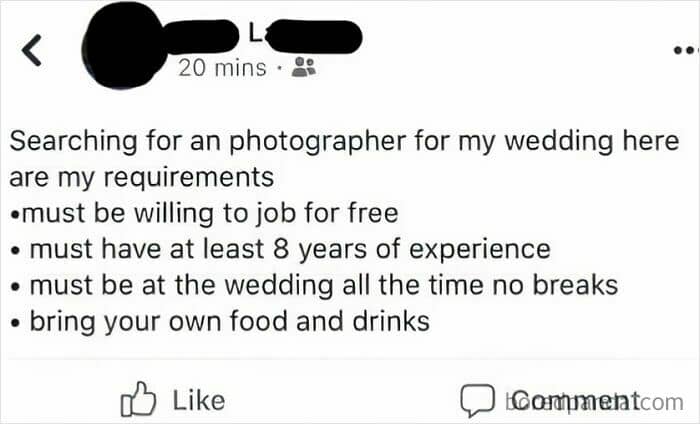 To drive this point home, the members of the subreddit ‘Wedding Shaming’ are sharing the cringiest moments they’ve witnessed on people’s big day. Judging from their posts, it seems like there are endless opportunitiesto ruin not just photos, but the memories as well—if you’re inconsiderate enough.