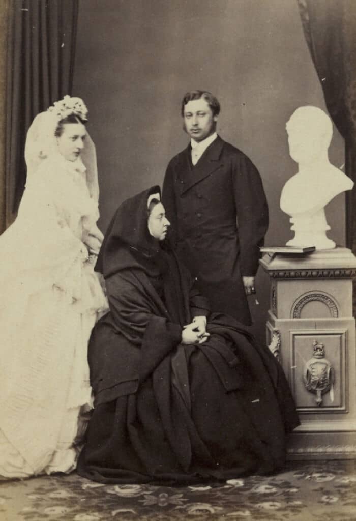 #2 Groom’s Mother Photobombs The Newly Weds’ By Sitting Between Them In Full Mourning Dress And Staring At A Bust Of Her Dead Husband