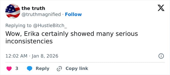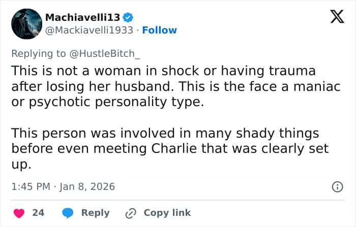 The post soon became flooded with criticism, with people accusing Erika of exploiting her husband’s passing to advance her career. “RIP Charlie. Erika you sus af,” one person commented.