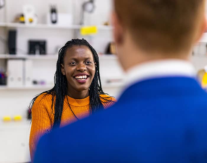 Easy. Stare at their hair while they’re talking. Then just say “did they mean to cut your hair like that?”