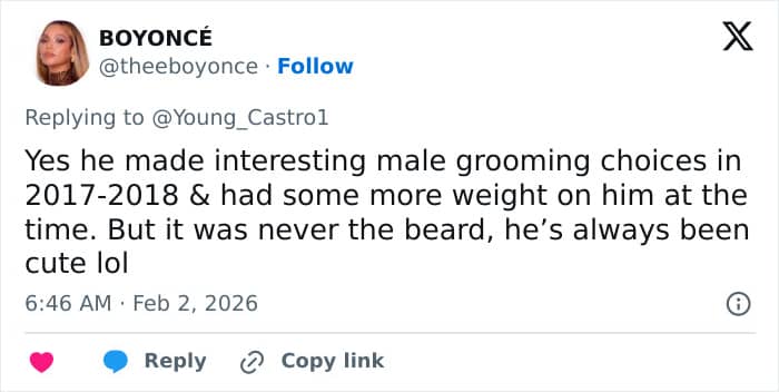 The now 31-year-old rapper was seen as the embodiment of charm and charisma in his black velvet suit and well-groomed beard at the 2026 Grammy Awards.