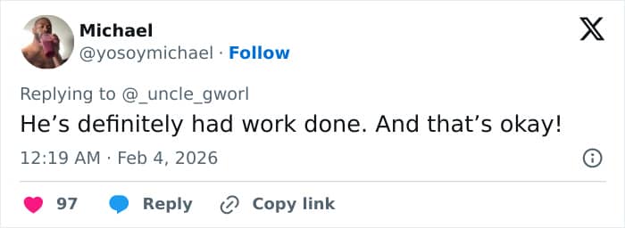 “He has definitely had work done. And that’s okay,” another wrote.