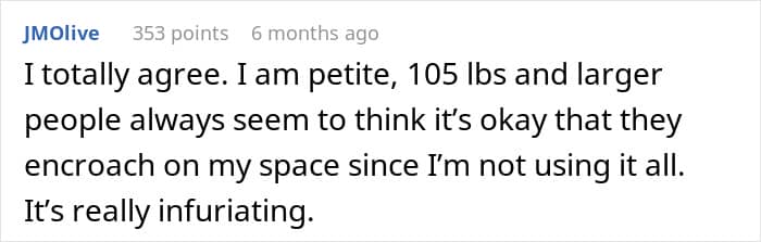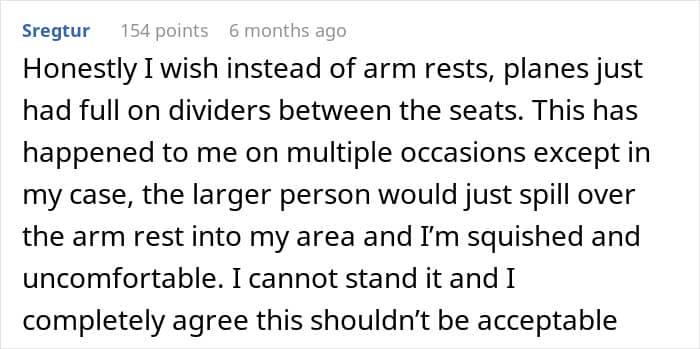 For three long hours, the disgruntled couple shifted uncomfortably while OP enjoyed their flight with the armrest firmly down. The incident, however, sparked frustration over airlines letting this happen in the first place, prompting OP to wonder why they don’t have clear policies on the issue.