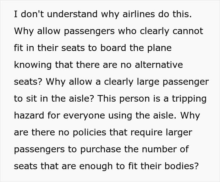 Irate after their less-than-ideal experience, the passenger vented online, demanding that airlines find solutions for larger passengers