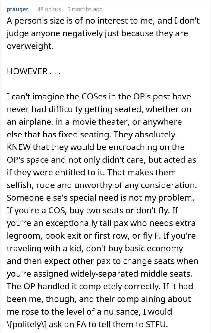 What do you think? Should all airlines adopt something like Southwest’s “customers of size” policy, or is OP being unreasonable? Share your opinion in the comments!