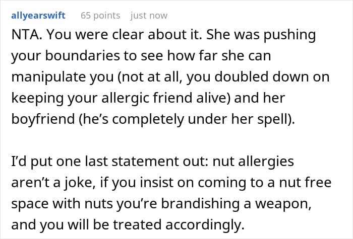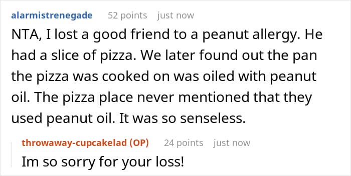In fact, people in the comments unanimously sided with the original poster, also recalling sad stories of losing their own friends and close ones over food allergies. So, according to the responders, this is absolutely not a case where one should give in to friends’ childish whims. And do you, our dear readers, also agree with this? Please feel free to share your thoughts in the comments below.