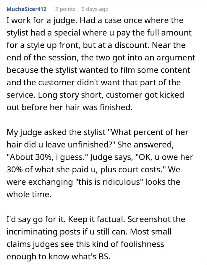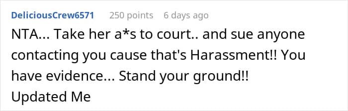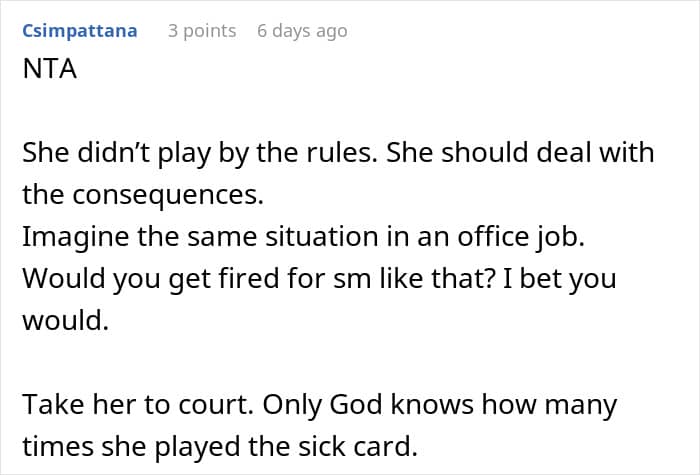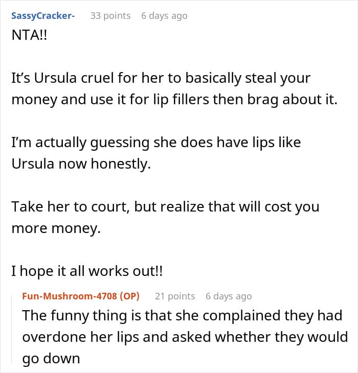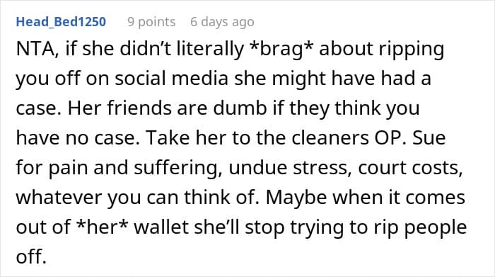 Commenters supported the decision to take the scammer to court: “She had lied and taken advantage of your sympathy”