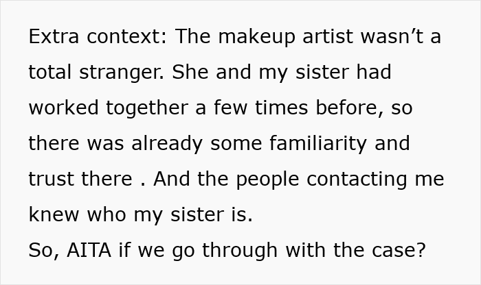 In her post, the bride’s sister doesn’t mention whether the makeup artist they hired was a freelancer or a salon professional. However, hiring freelance artists can often be less reliable, especially for such a special occasion as a wedding.