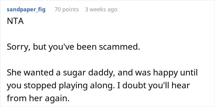 But when she later asked for another $2.5K, he refused—and now she’s cut off all contact