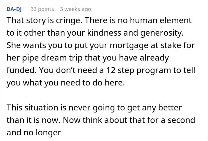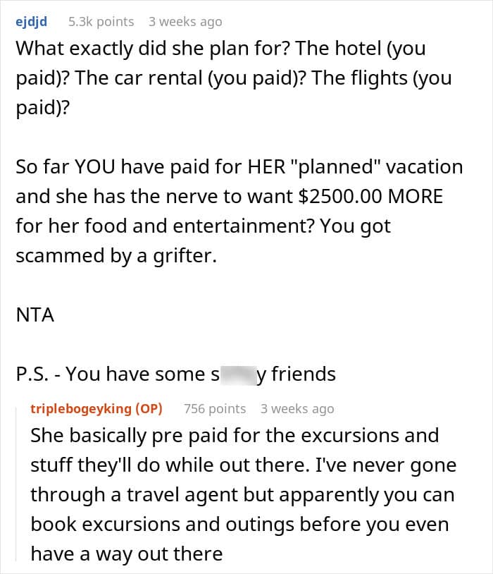This Redditor paid $5K for his girlfriend and her son’s vacation, hoping they’d have a memorable trip together. However, when she later asked for another $2.5K, he refused, feeling he had already contributed more than enough. She’s been giving him the cold shoulder ever since, so now he’s asking the internet for help.