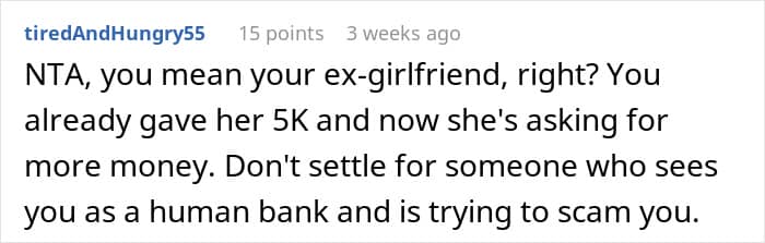 Most readers felt bad for the author, claiming his girlfriend was taking advantage of him