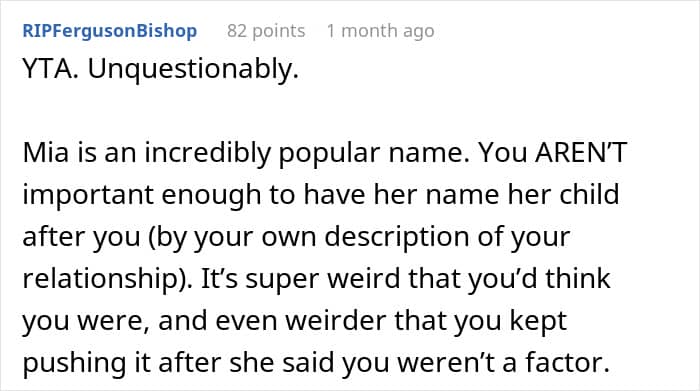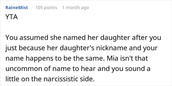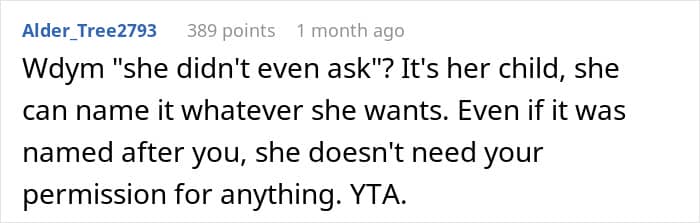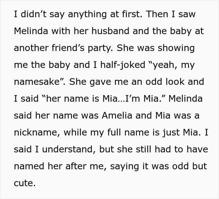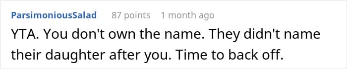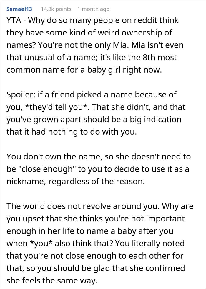 Although OP’s anger was likely unfounded, baby names can stir up quite the drama. There are plenty of similar stories on Reddit with new mothers complaining that their friends or family members stole their baby’s name. Even Rachel on Friends stole her best friend Monica’s favorite name for her daughter Emma.